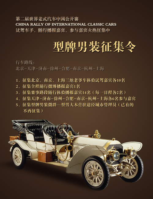 一、 征集北京、南京、上海三地老爷车体验试驾嘉宾各10名