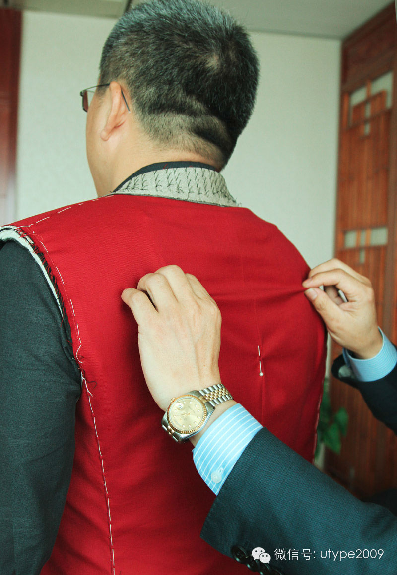 半成品完成后,约见了刘老师为他当场试衣,试衣过程中需要修改的细节以及刘老师提出的建议,均由版师记录下来,带回到裁剪师手中重新制作,所有的一切步骤都只为做到最合身、最完美!