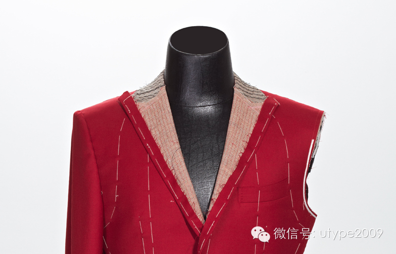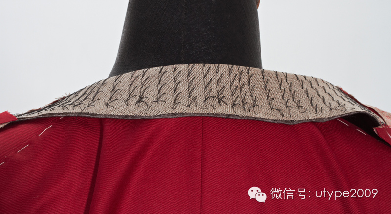 16种手工针法与面料缝合一起的独特工艺,完成一副半麻衬的制作;