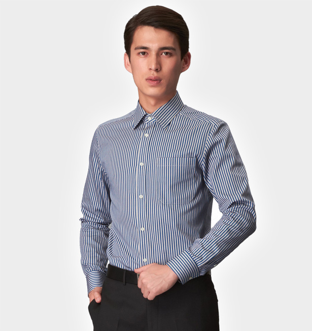 您的位置:衬衫定制>> 午夜蓝条纹全棉长袖衬衫