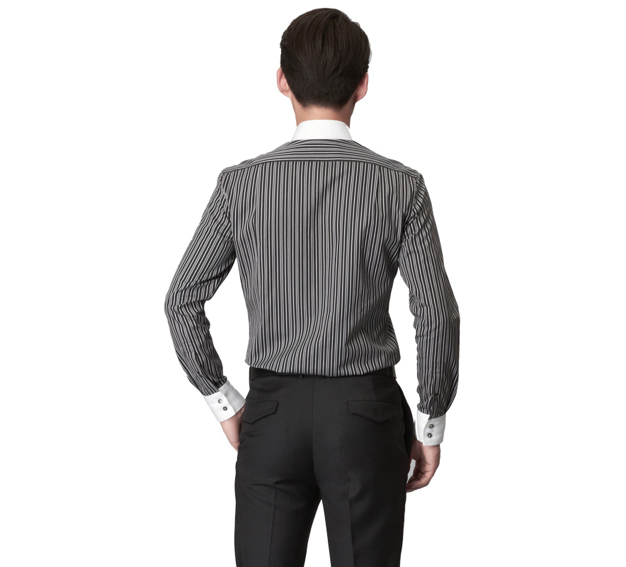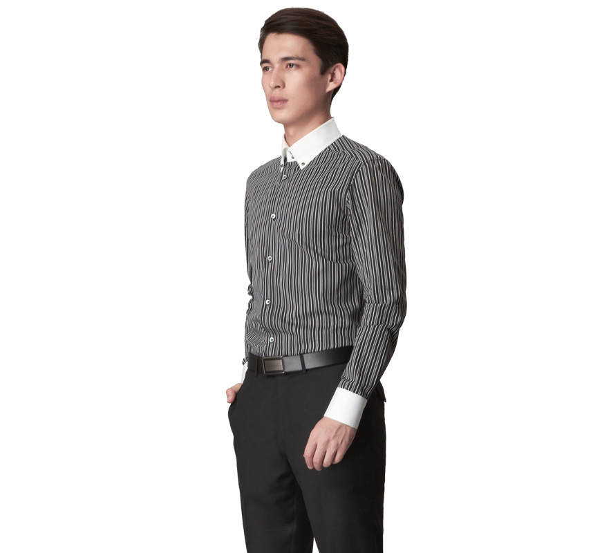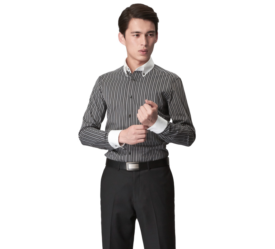 您的位置:衬衫定制>> 黑白条纹纯棉长袖衬衫