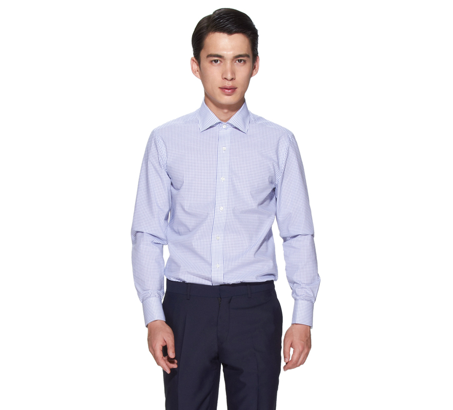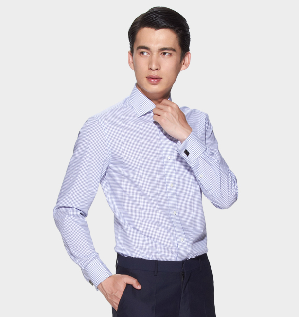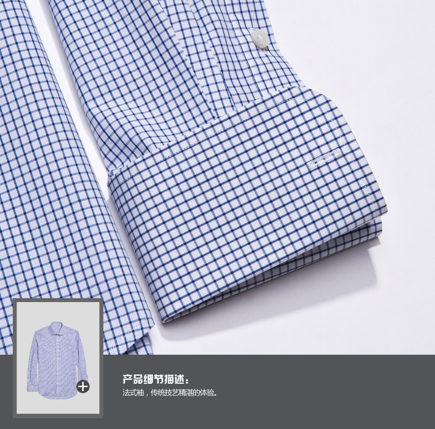 您的位置:衬衫定制>> 蓝白格纹法式衬衫