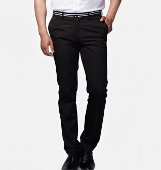 黑色纯棉斜纹磨毛休闲裤