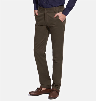 卡其绿纯棉斜纹休闲裤