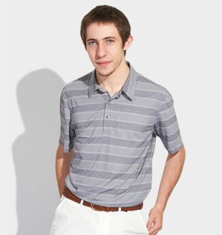 灰色横条纹半袖POLO衫