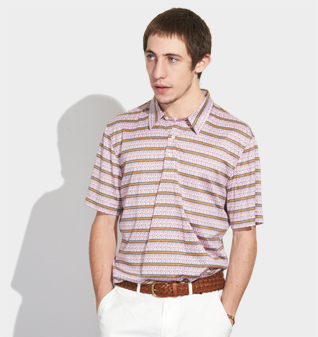 粉色提花横条纹半袖POLO衫