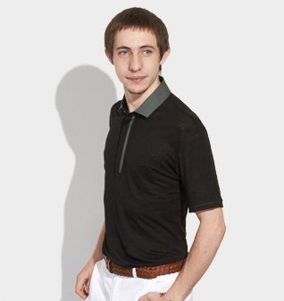 黑色亚麻半袖POLO衫