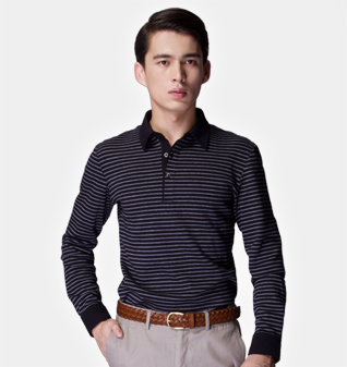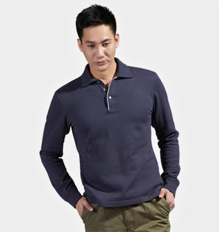 海蓝色莫代尔长袖POLO衫