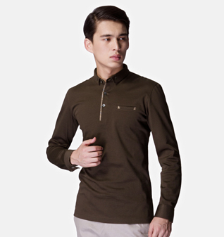 咖啡色拼接纯棉长袖POLO衫