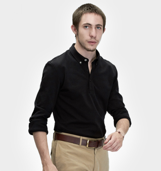 黑色领尖扣款纯棉长袖POLO衫