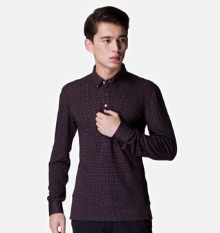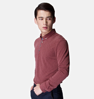 暗红色莫代尔长袖POLO衫