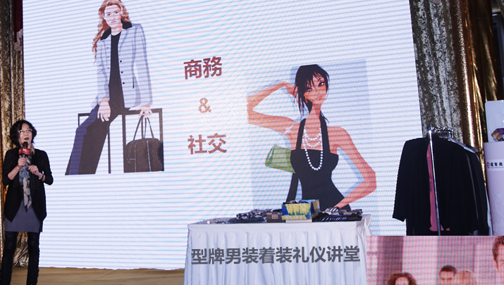 2011年圣诞节,瑞丽联合招商银行、型牌男装等知名品牌在北京来福士广场举行盛大的瑞丽购物节。型牌男装在购物节上推出“型牌男装着装礼仪讲堂”,特邀著名作家、华人世界形象管理大师、海峽两岸最资深形象顾问——李昀女士为大家讲解不同场合的着装搭配及造型、礼仪。