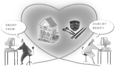 网络定制充分满足了年轻消费者追求时尚、个性的心理。在这个机械复制时代,追求、拥有一份独一无二的礼物,成为越来越多消费者的选择。而网络定制的优势还在于,鼠标一点就可以把特别的礼物送到目的地。在网上开了一家定制礼品店的大丁告诉记者,顾客不仅可以自己设计商品,他们还为顾客提供个性化服务,比如免费送礼顾问、免费设计。