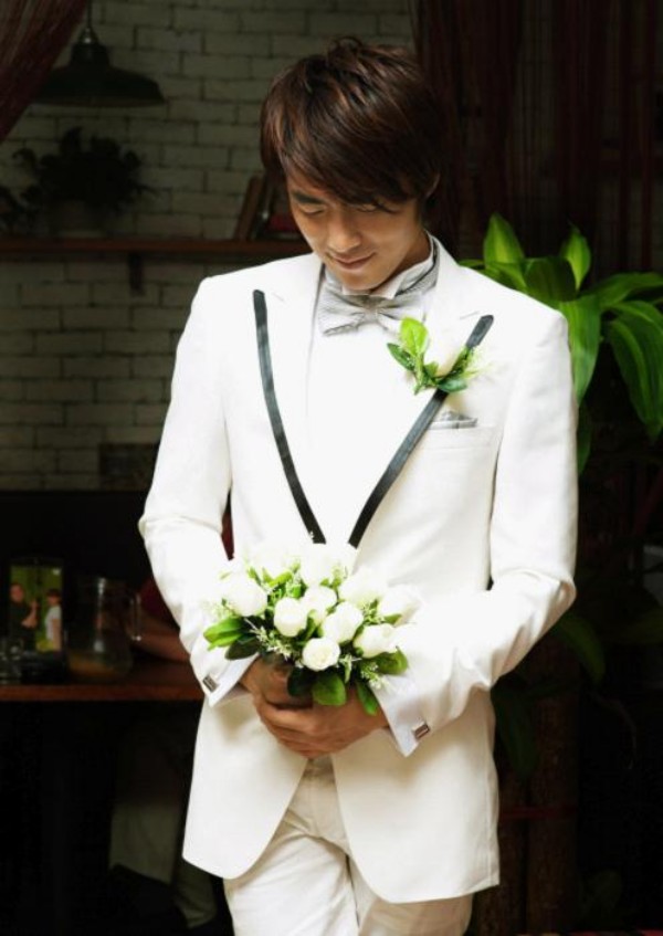 纯净洁白代表着彼此一生的承诺与誓言。经典简约的英伦格调,黑色哑光镶边设计。礼服采用高品质的人造丝面料,做工考究,整体线条流畅,优雅大气,非常适合温文尔雅,富有书卷气质的男士。