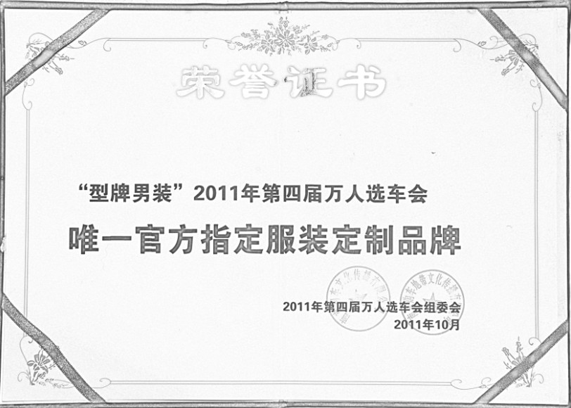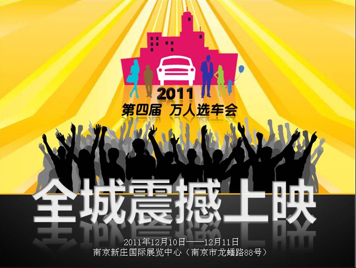 一年一度的年底购车大潮即将到来,南京各大汽车品牌经销商促销大战都已如箭在弦,只等12月10日-11日在新庄国际展览中心举行的第四届万人选车会的到来。团宝马、团起亚、团别克、团福特、团马自达……数十个汽车品牌,数百种抢手车型,共同掀起一场汽车团购盛宴。型牌男装作为高级商务男装在线定制品牌,被组委会确定为协办单位和官方唯一指定服装定制品牌,将继方程式赛车、世界老爷车中国公开赛和雅安电影周之后,在2011年终再为这一万人选车活动添一把火。